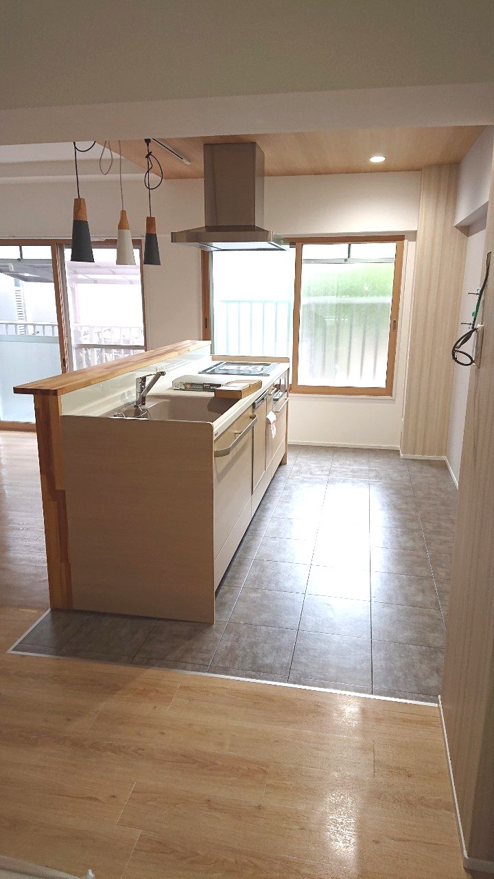キッチン・リビングは窓からの光と風を導き入れ心地よい空間。